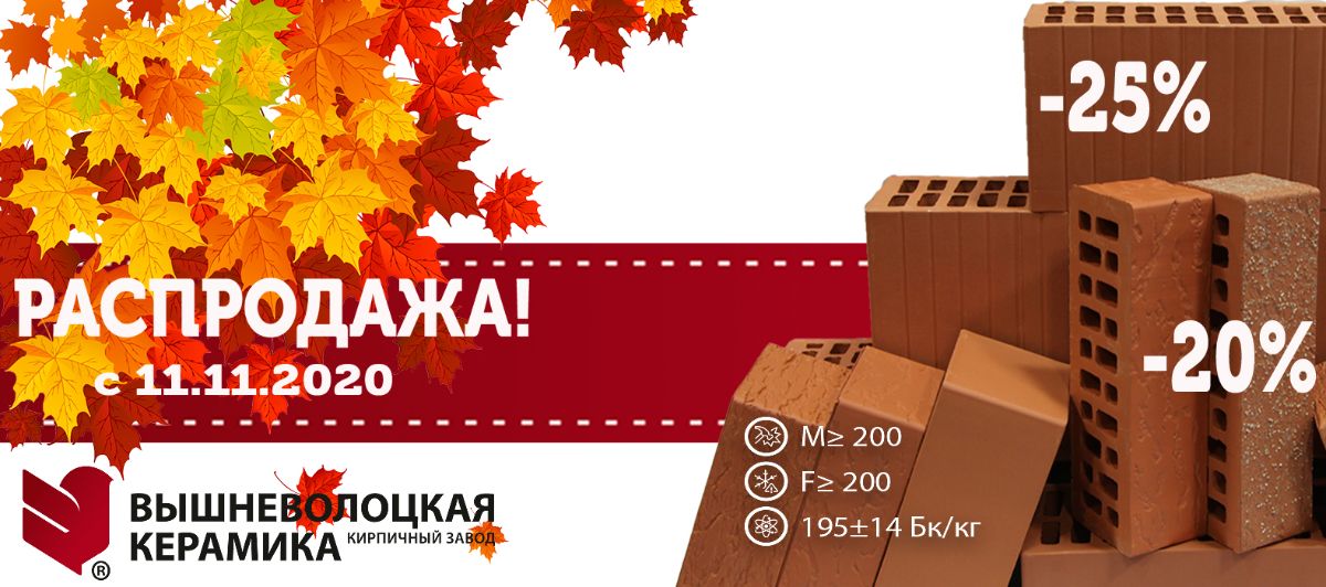 Вышневолоцкая Керамика подготовила впечетляющий подарок своим клиентам. В дополнение к уже проводимой Акции «Баварская кладка. Купи сейчас, забери весной!» объявляем о грандиозной РАСПРОДАЖЕ с 11.11.2020 года.